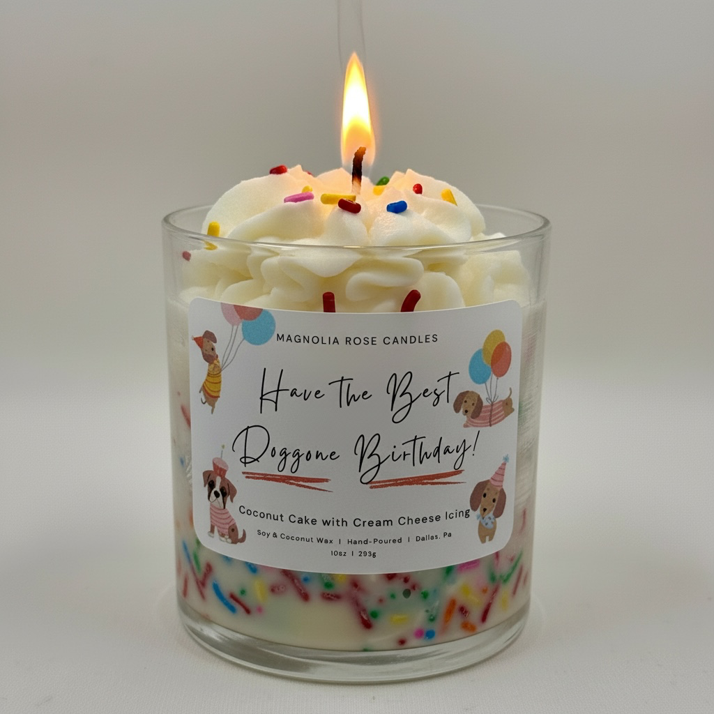 Make a wishes, take a sniff, and celebrate! 🎂✨ This candle brings that classic birthday cake scent with a sprinkle of fun to every moment. This candle helps that special someone have the Best Doggone Birthday yet!